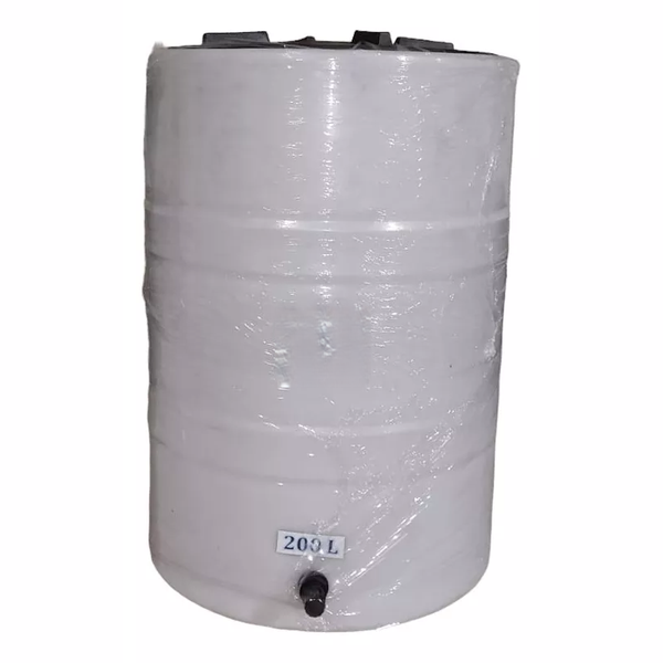 Contenedor de polietileno blanco traslúcido de 200 litros, grado alimenticio