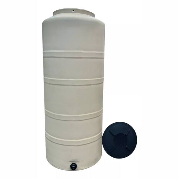Tinaco de polietileno tricapa beige de 350 litros, espacios reducidos. Incluye accesorios