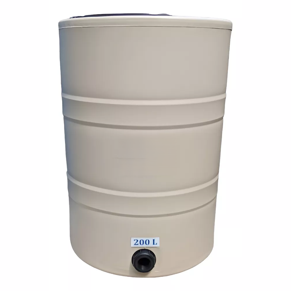 Tinaco de polietilento tricapa beige de 200 litros. Incluye accesorios