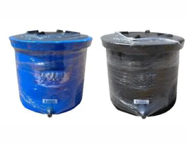 Tinaco de polietileno tricapa azul de 500 Litros, espacios reducidos. Incluye accesorios