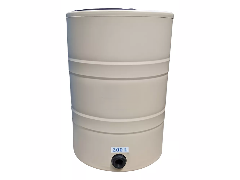 Tinaco de polietilento tricapa beige de 200 litros. Incluye accesorios